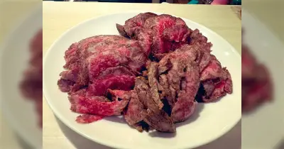 霜降りのローストビーフを頂いて食べたら、海原雄山が言っていたように牛の脂は体温で溶けない…なんてことはなくてウマい!「なんで?」