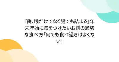 『餅、喉だけでなく腸でも詰まる』年末年始に気をつけたいお餅の適切な食べ方「何でも食べ過ぎはよくない」