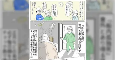 『船内孤独死』お正月休み明け、出港準備で1人だけ出てこないので起こしに行くと死後1日以上経過… 同じ船でも毎日顔を合わせない事もあるので意外とあり得る話