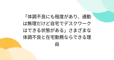 「体調不良にも程度があり、通勤は無理だけど自宅でデスクワークはできる状態がある」さまざまな体調不良と在宅勤務ならできる理由