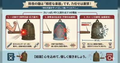 「鐘 は 割 れ ま す」除夜の鐘が近づく中、カレー坊主さんが鐘突きの注意点を解説 用法用量を守って良い音を出そう
