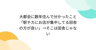 大都会に数年住んで分かったこと「駅チカにお店が集中してる田舎の方が良い」→そこは田舎じゃない