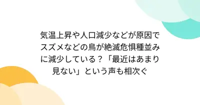 気温上昇や人口減少などが原因でスズメなどの鳥が絶滅危惧種並みに減少している?「最近はあまり見ない」という声も相次ぐ
