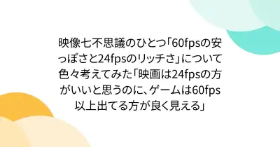 映像七不思議のひとつ「60fpsの安っぽさと24fpsのリッチさ」について色々考えてみた「映画は24fpsの方がいいと思うのに、ゲームは60fps以上出てる方が良く見える」