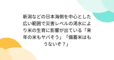 新潟などの日本海側を中心とした広い範囲で災害レベルの渇水により米の生育に影響が出ている「来年の米もヤバそう」「備蓄米はもうないぞ?」