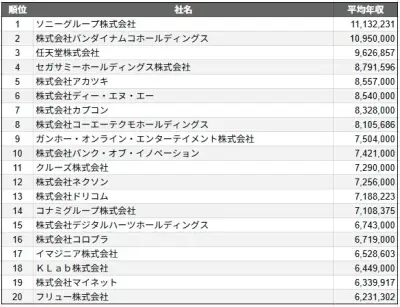 【速報】ゲーム会社の平均年収ランキング、公開されるwwww