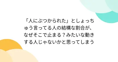 「人にぶつかられた」としょっちゅう言ってる人の結構な割合が、なぜそこで止まる?みたいな動きする人じゃないかと思ってしまう