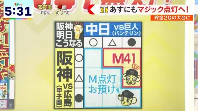 阪神・明日勝利し、巨人が中日に引き分け以上でマジック41点灯