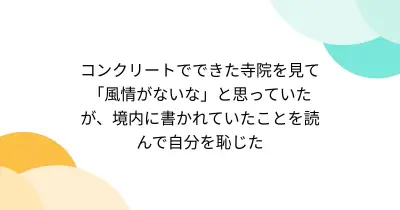 コンクリートでできた寺院を見て「風情がないな」と思っていたが、境内に書かれていたことを読んで自分を恥じた