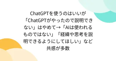 ChatGPTを使うのはいいが「ChatGPTがやったので説明できない」はやめて→「AIは使われるものではない」「経緯や思考を説明できるようにしてほしい」など共感が多数