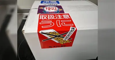 「うに 横にしないで」と書かれたシールが貼られた箱が届いた、中身はちゃんとウニで美味しくいただきました→ウニ専用のシールがあることにみんな驚く