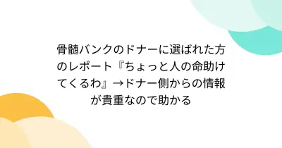 骨髄バンクのドナーに選ばれた方のレポート『ちょっと人の命助けてくるわ』→ドナー側からの情報が貴重なので助かる