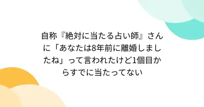 自称『絶対に当たる占い師』さんに「あなたは8年前に離婚しましたね」って言われたけど1個目からすでに当たってない