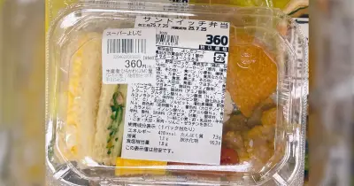 サンドイッチ弁当と書かれたラベルの下におにぎりが隠れてるとは思わないじゃない「素晴らしいわんぱく具合」