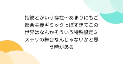 指紋とかいう存在…あまりにもご都合主義ギミックっぽすぎてこの世界はなんかそういう特殊設定ミステリの舞台なんじゃないかと思う時がある