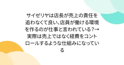 サイゼリヤは店長が売上の責任を追わなくて良い、店員が働ける環境を作るのが仕事と言われている?→実際は売上ではなく経費をコントロールするような仕組みになっている