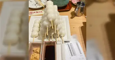 おかげ庵で団子をまとめて頼んだら店員さんが確認しに来てしまった→お月見団子のように団子が積まれていて店員が見に来たのも納得だった