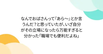 なんでおばさんって『あら~』とか言うんだ?と思っていたが、いざ自分がその立場になったら万能すぎると分かった「職場でも便利だよね」