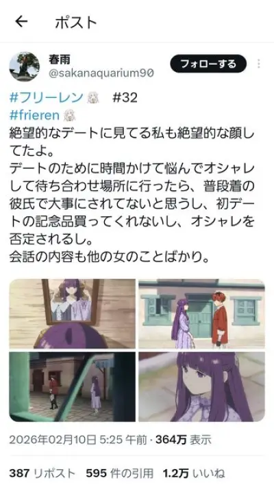 【悲報】葬送のフリーレンのシュタルク、デートの態度が悪すぎて炎上