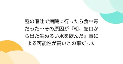 謎の嘔吐で病院に行ったら食中毒だった…その原因が『朝、蛇口から出た生ぬるい水を飲んだ』事による可能性が高いとの事だった