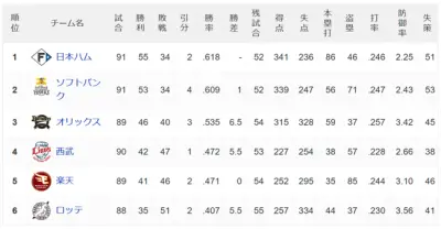 パ・リーグ順位表(7月27日)ロッテ3点差から逆転勝利、SB勢い止まらず8連勝で首位ハムと1G差