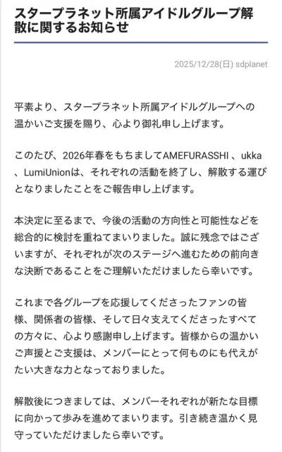 衝撃!「スターダスト」発の女性アイドル3組が来春での解散を事務所が発表
