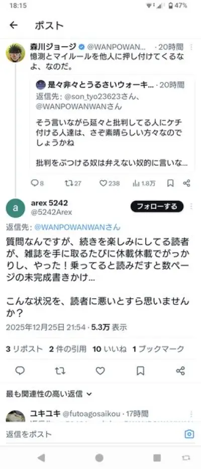 はじめの一歩の作者、休み過ぎな事をファンに咎められてめっちゃ効いてしまう