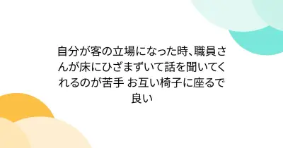自分が客の立場になった時、職員さんが床にひざまずいて話を聞いてくれるのが苦手 お互い椅子に座るで良い