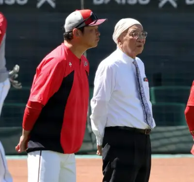 カープ松田オーナーが新井監督を激励。シーズン中では異例。巨人長野も駆け寄る