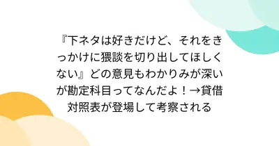 『下ネタは好きだけど、それをきっかけに猥談を切り出してほしくない』どの意見もわかりみが深いが勘定科目ってなんだよ!→貸借対照表が登場して考察される