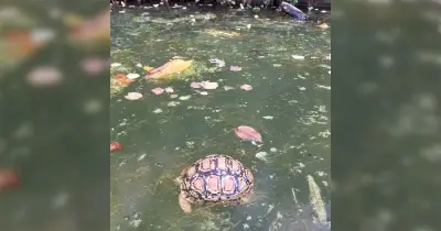 【閲覧注意】池に浮いていたモノ、ボールかと思ったらリクガメだった→泳げない亀もいることを知らない人は多い