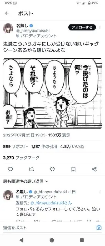 鬼滅の刃の寒いギャグを指摘した浪人生、炎上