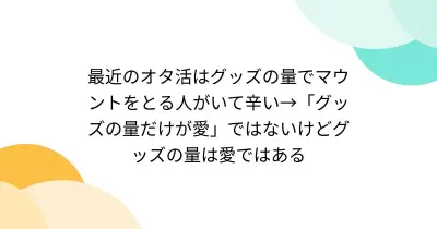 最近のオタ活はグッズの量でマウントをとる人がいて辛い→「グッズの量だけが愛」ではないけどグッズの量は愛ではある