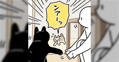 「こっそりおやつ貰ってるでしょ!?」兄猫の芸披露タイムを勘違いして駆けつけたやんちゃな猫→慰めの鼻チューの輪に人間も入れて貰えてやさしい世界