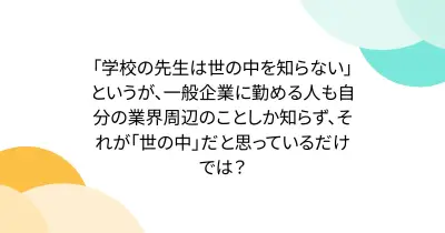 「学校の先生は世の中を知らない」というが、一般企業に勤める人も自分の業界周辺のことしか知らず、それが「世の中」だと思っているだけでは?