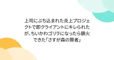 上司にぶち込まれた炎上プロジェクトで即クライアントにキレられたが、ちいかわゴリラになったら鎮火できた「さすが森の賢者」