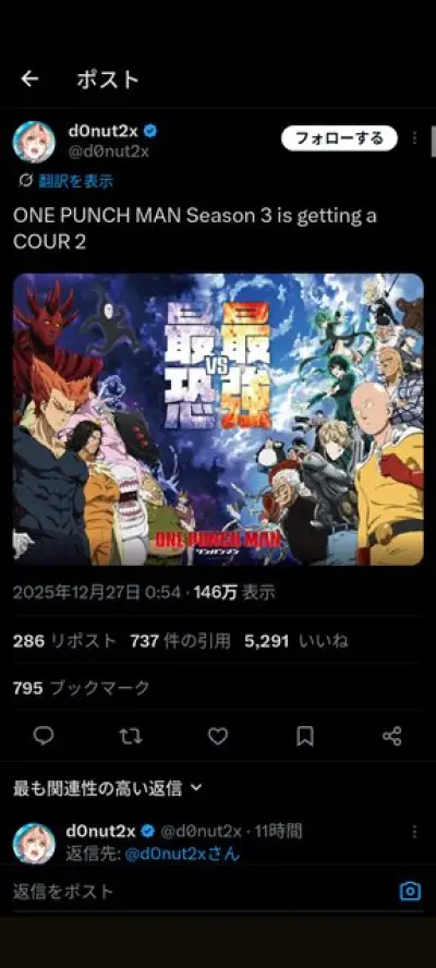 【朗報】ワンパンマン3期、2クール目も制作決定で外人たちも号泣wwwwwwwwwwwwwwwwwwwwwwwww