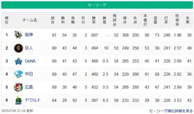 今年の阪神タイガースさん、とある指標で2以下の球団と『100倍』の差をつけていた