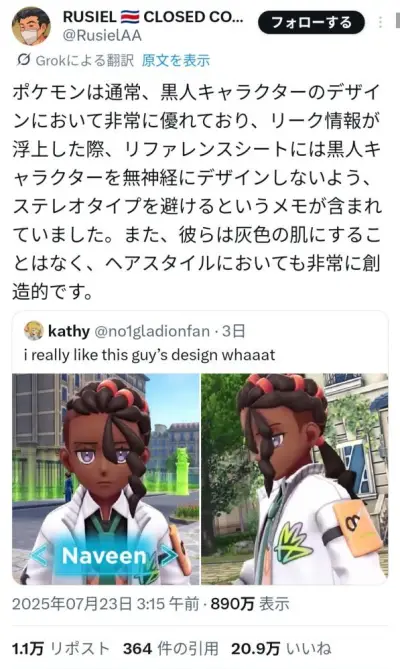 【朗報】ポケモン新作の黒人キャラ、イケメン過ぎて海外でポケモンのポリコレ最強とバズる