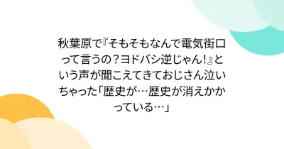 秋葉原で『そもそもなんで電気街口って言うの?ヨドバシ逆じゃん!』という声が聞こえてきておじさん泣いちゃった「歴史が…歴史が消えかかっている…」