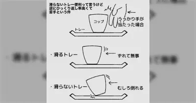 滑らないトレーは便利って言うけど、逆にひっくり返す率が高くて苦手→滑らないトレー派と滑るトレー派が分かれる