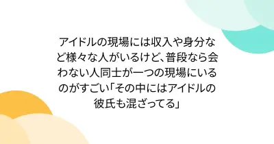 アイドルの現場には収入や身分など様々な人がいるけど、普段なら会わない人同士が一つの現場にいるのがすごい「その中にはアイドルの彼氏も混ざってる」