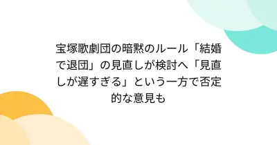 宝塚歌劇団の暗黙のルール「結婚で退団」の見直しが検討へ「見直しが遅すぎる」という一方で否定的な意見も