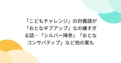 「こどもチャレンジ」の対義語が「おとなギブアップ」なの嫌すぎる話…「シルバー降参」「おとなコンサバティブ」など他の案も