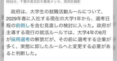 政府が就活日程の見直しを検討→後ろ倒しではなく前倒しにするらしく、誰のための改善なのかと話題に「両立できない人が失敗する仕組み」