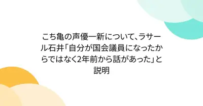 こち亀の声優一新について、ラサール石井「自分が国会議員になったからではなく2年前から話があった」と説明