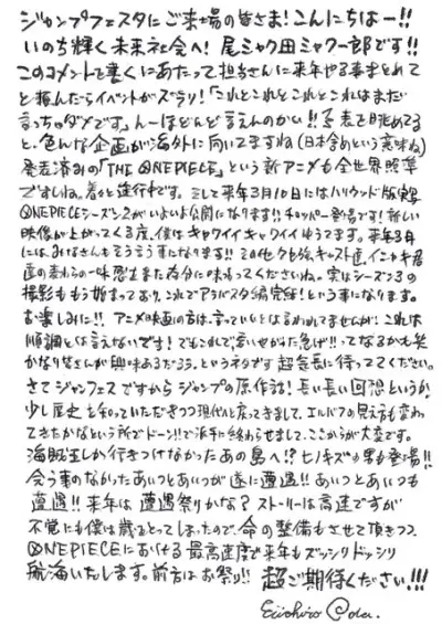 【悲報画像】ワンピース尾田っちの直筆メッセージ、ガチで空白恐怖症っぽい