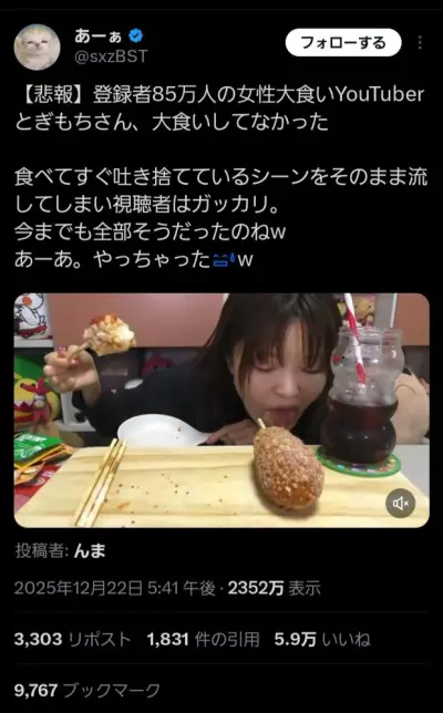 【悲報】大食い系YouTuber、ノーカットしか信用できない事態に