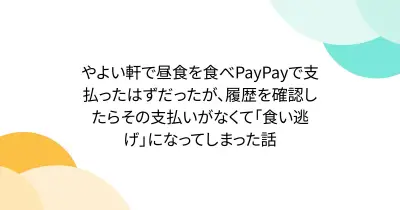 やよい軒で昼食を食べPayPayで支払ったはずだったが、履歴を確認したらその支払いがなくて「食い逃げ」になってしまった話