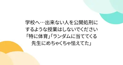 学校へ…出来ない人を公開処刑にするような授業はしないでください「特に体育」「ランダムに当ててくる先生にめちゃくちゃ怯えてた」